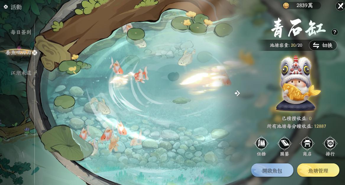 肅殺的江湖,來養魚體驗愜意的田園生活吧!還有機會獲得「問影晶石」、「圖示:金光鯉影」和「吾愛‧蘿趴趴」。
